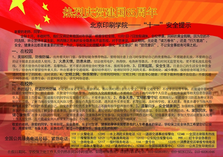 热烈庆贺建国65周年——保卫处安全小提示